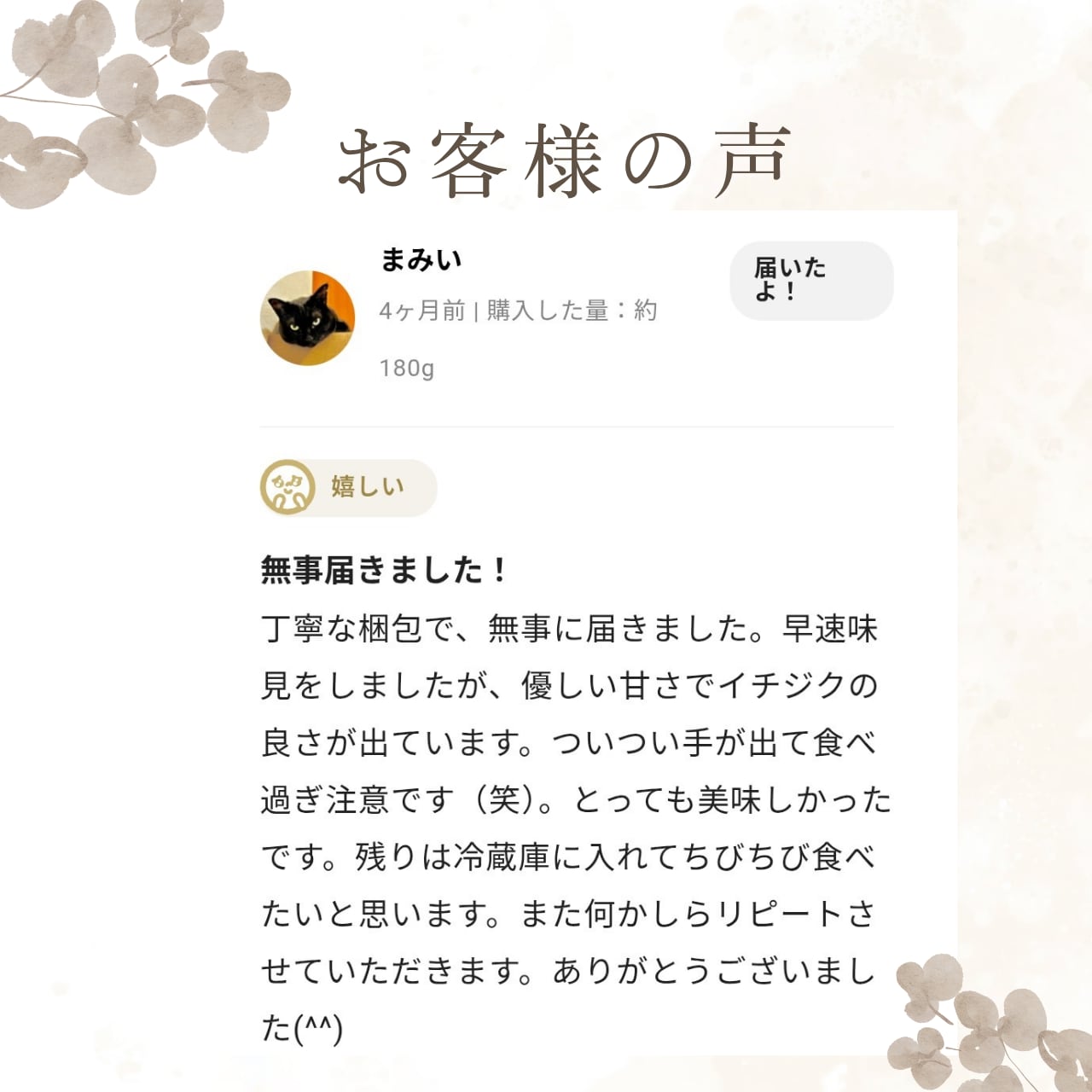 お客様の声 | 国産ドライいちじく通販|ミツリッチ本店